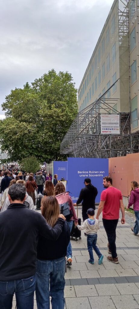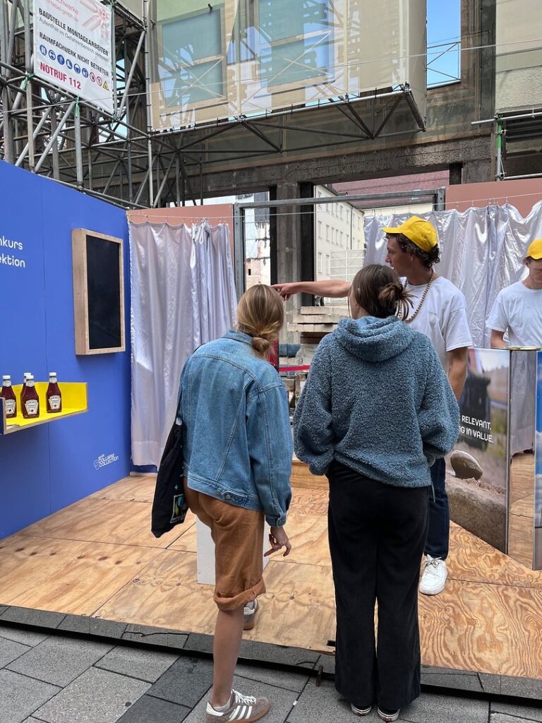 This trust mechanism extended to the site itself. The Alte Akademie, emptied by speculation, became part of the display, as if building, booth, and fenced-off ruins had always been elements of the spectacle.
